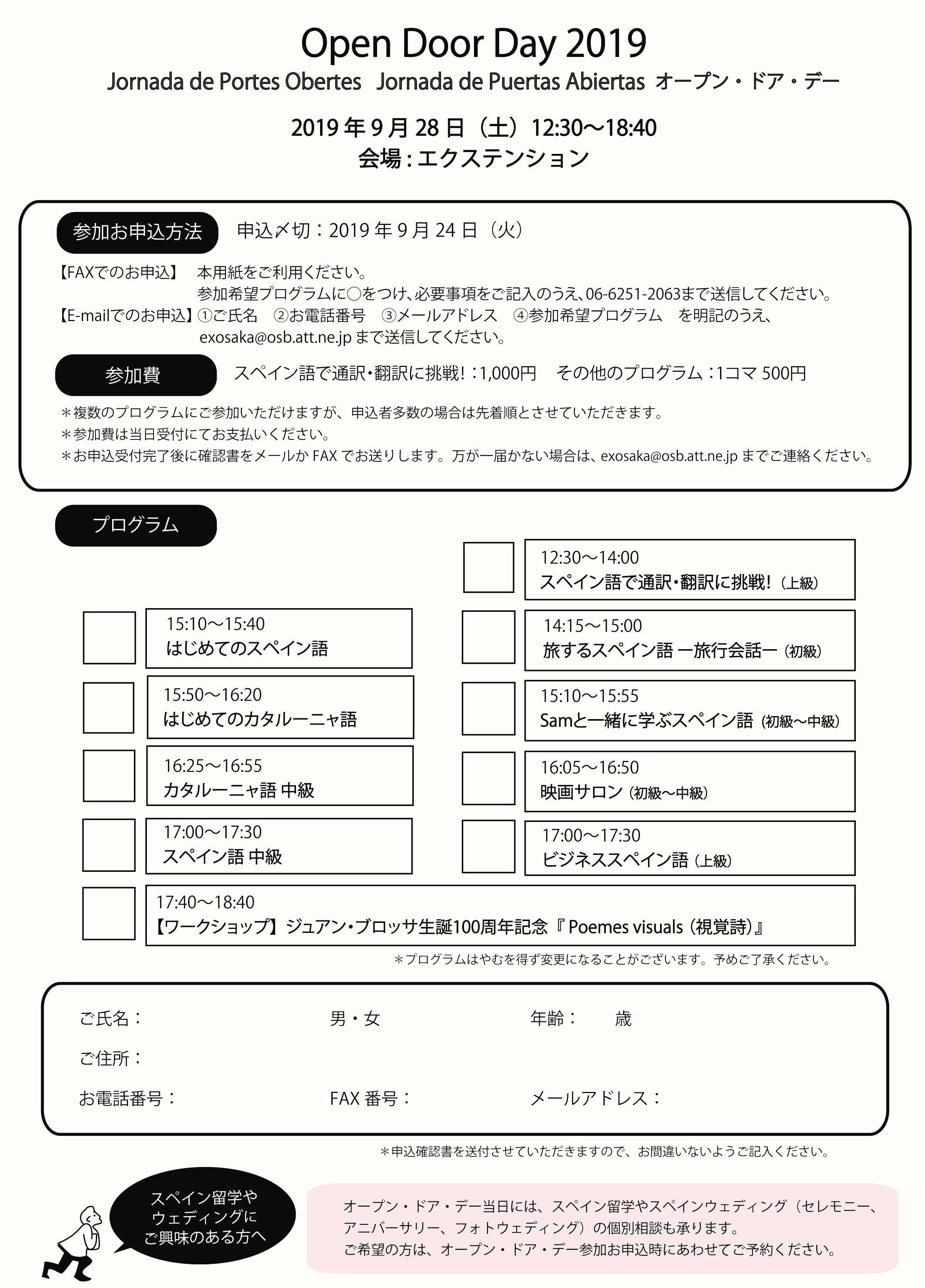 参加お申し込み方法:<要予約>申し込み締め切り 2019年9月24日(火)